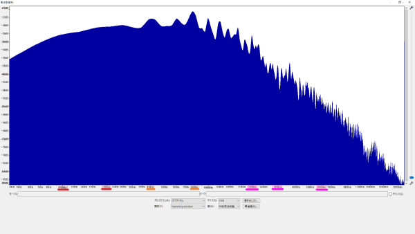 周波数特性はDI直で同一フレーズを繰り返し、平均的なスペクトラムを算出しました。