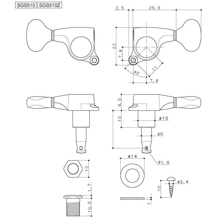 堅牢なボディに重厚なメッキによる美しい外観を備えたSG510より、ミディアムサイズで設計されているロトマチックペグがSGS510です。同一形状でギア比がより高い高精度モデルとして、SGS510Zもラインナップされています。