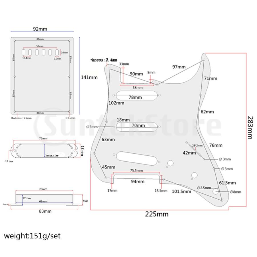 ・STタイプピックガードとバックプレート各1枚、シングルコイル用ピックアップカバー3個、スクリュー17本が1セット